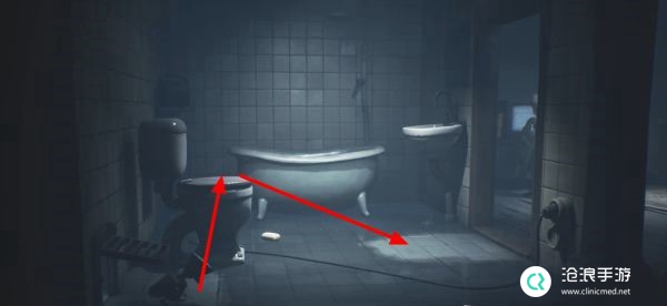 关闭房间中的电视机后快速返回马桶上,房间中的大人来追击我们时会接触水面触电身亡。