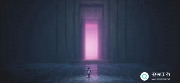 重复数次后西装男人化为虚影消散,继续按住前进键来到一栋建筑面前,大门打开透出粉色光芒,进入大门后本关卡结束。
