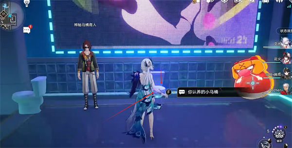 然后左转,看到神秘马桶商人,和他对话认养一只马桶