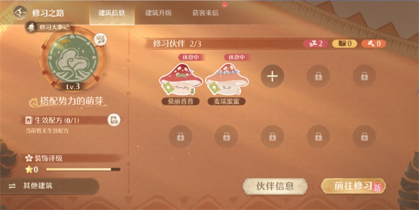 修行之路招募第三只菇(过完任务后下图1的位置点加号,三选一下图2地图上过去对话即可)给美容店派店员(图3)没有合适的店员可以先用初始那只菇,2选1招募就好了