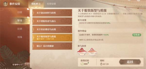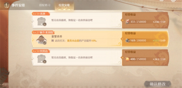美容店修的早的话,修行之路可以今天升5级招募第四个店员(下图1、2分別第一次第二次)然后把店员都派去学习(下图3)5级解锁第二个配方后我目前看是学习事件给的经验更多,不确定是否日常事件有额外的效果