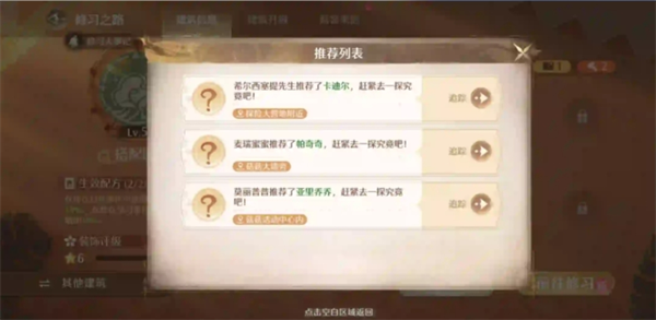 1、先传送到饮料店那附近,就能自动接到一些对话跑腿任务,做完后在无限之心解锁,就能建好美容店。接下来用上版本攒的50w蜜果和温泉石,目前可以直升25级美容店(没攒也没关系)可以把p2-3的配方都摆出来选上。