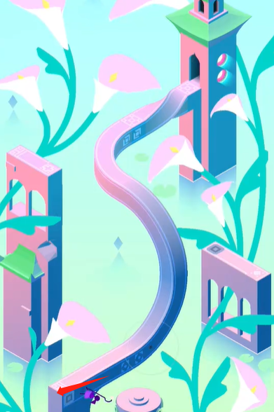 第三区域节奏趋于明朗,延续前序逻辑:通过重复旋转操作整合场景内所有路径单元,构建出从起点直达高处的完整动线。沿底层通路稳定行进,抵达顶部隐匿门后即进入终局空间。门内呈现一朵精巧绽放的几何花卉,作为本章叙事终点标识。操控角色步入花心结构,静待过场动画自动播放,即可宣告纪念碑谷3第十关成功通关。