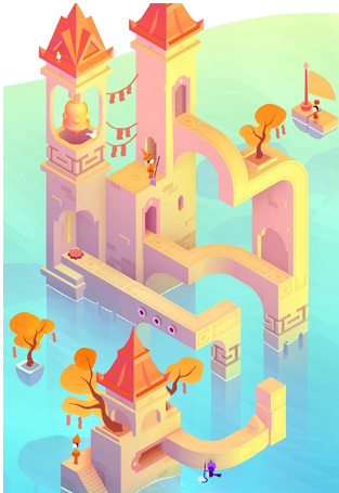 除镜面系统外,本关融合多项经典与新增机制:空间错位与视角重构仍是基础解谜语言,断续路径可通过微调观察角度实现视觉连通;同时引入船舶航行玩法,玩家可操控小船穿行于超现实水域,完成开放式的水上机关联动;另设植物生长互动系统,通过点击与滑动指令促使藤蔓延展成桥、搭建成梯,操作门槛极低,兼顾新手友好性与策略延展性。