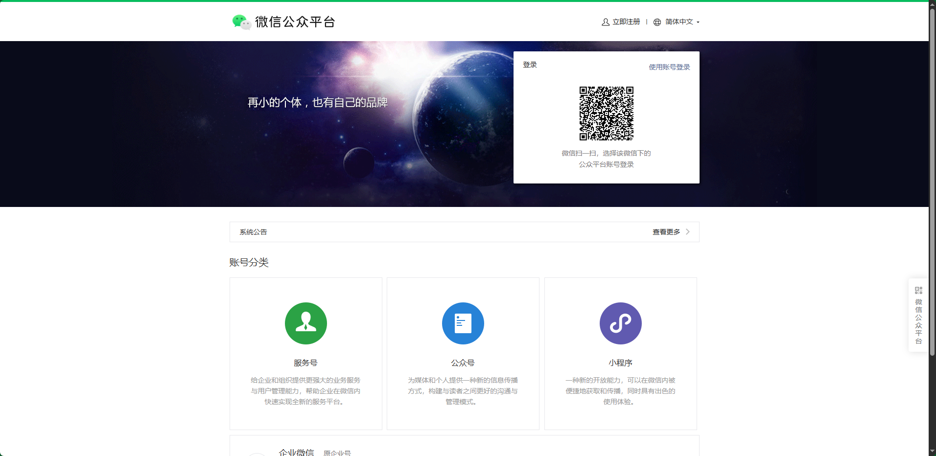 系统默认提供扫码登录功能,管理员或运营者只需用绑定公众号的微信扫描二维码,在手机端确认即可完成验证。这种方式兼具安全性和便捷性,特别适合需要频繁登录的用户。