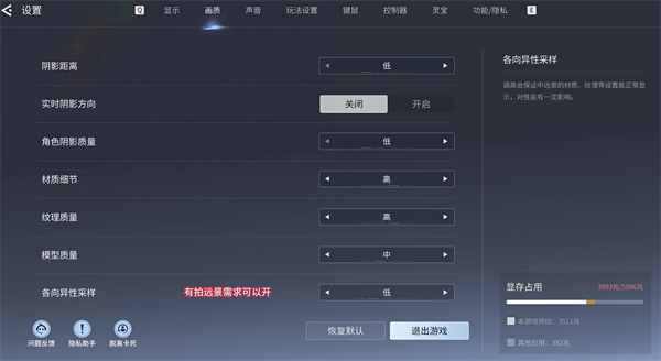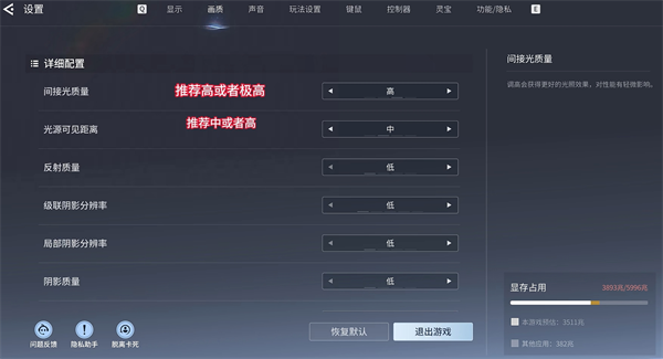 2、除了材质、纹理、模型,其他都最低