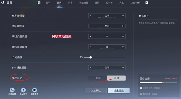 5、角色补光必须开,其他照着改
