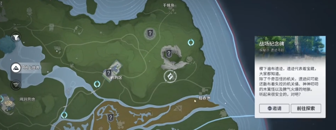 第二个进入到战场纪念碑,找到平台上的机关操控机关向外面旋转两次,可以拿到第二件道具。第三个地方是空名冢,在抵达目的地之后,朝着前面走一段就可以找到任务地点。抵达之后先推动上层的机关,再往下层对面位置推动对应的机关。操作完成之后就可以拿到第三个道具,第四站就来到了翠箩野传,送到这个地点之后,朝着西南的方向前进。找到指定的遗迹之后,然后把周围的小怪清理掉,就可以拿到第四件道具。