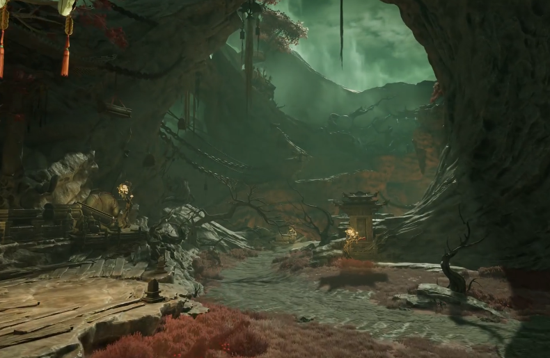 美术设计严格遵循中式美学范式:建筑形制参照中晚唐官式营造,服饰纹样取材敦煌遗书与《酉阳杂俎》记载,怪物设定溯源《搜神记》《夷坚志》等典籍。全场景手绘质感贴图配合UE5 Nanite几何细节,实现废墟青苔的微距生长、烛火摇曳的粒子投影、符纸燃烧的物理灰烬等影视级表现,为玩家提供兼具文化厚度与技术张力的国风奇幻体验。