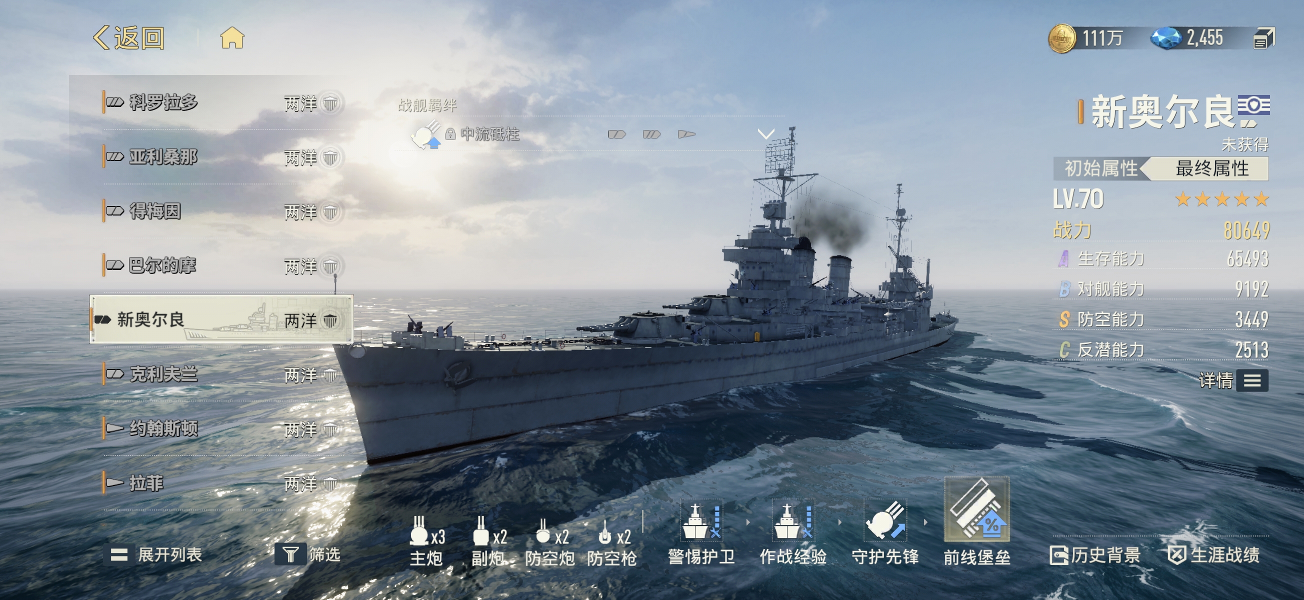 在《苍蓝前线》这款以舰船拟人化为核心的策略海战手游中,玩家可通过多种途径获取不同稀有度的作战单位,参与实时微操或全自动战斗。舰船品质体系划分为蓝、紫、橙三档,其中橙色品质代表当前版本最高稀有度。新奥尔良作为两洋同盟阵营的代表性舰艇,正是该品质序列中的核心成员之一,具备显著的战略辨识度与实战价值。