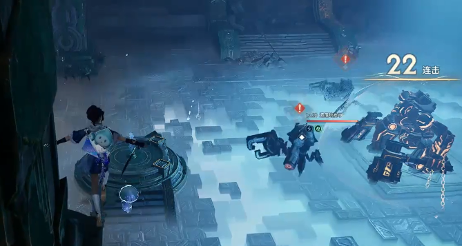 探秘流程以主线任务“鲲游-云落远山”为起点。完成该任务后,玩家将被传送至【藏兵城渡石】区域,正式开启后续环节。首段路径需在广场区域清剿基础敌对单位,随后沿阶梯攀升至断崖平台,启用牵引技能将指定目标移至左前方位置。穿过墙体缺口后,与NPC“神工役”交互并接受测试指令,击败守关敌人即可获取“第一把测试机关钥”。此时,两柄长枪道具同步解锁,成为推进解谜与挑战升级的核心交互工具。