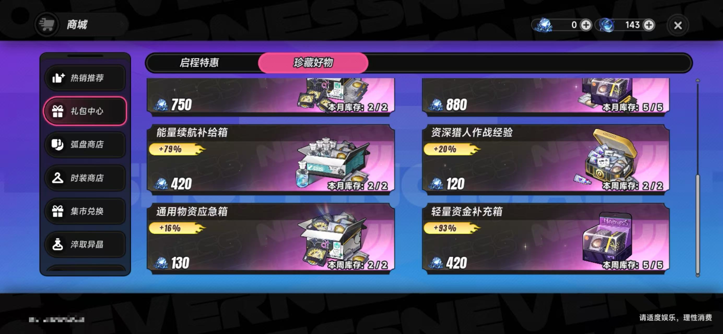 在《异环》中高效成长,离不开对核心养成资源的科学规划。其中,“珍藏好物”作为商城内重点运营的限时礼包板块,是玩家快速积累关键道具、缩短养成周期的重要途径。该板块位于游戏主界面右上角【商城】→【礼包中心】二级菜单中,位列第二项,位置固定且入口明确。