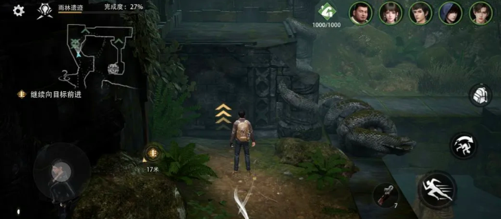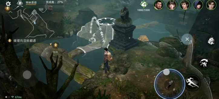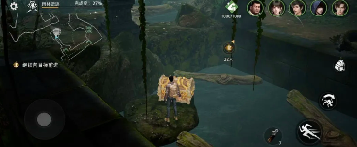 开启探索前需完成三项基础准备:第一,定位至“雨林遗迹”章节;第二,确保队伍中编入吴邪角色;第三,为其装备罗盘装置。吴邪具备专属解谜属性加成,可显著提升机关交互响应效率;罗盘则能稳定提高解谜成功率约20%,是后续多阶段机关联动的关键前置条件。进入林地后,沿蜿蜒河道前行,跨越两处山岩障碍,即可在视觉盲区的水面下方发现首个漂浮宝箱——它仅作引导之用,真正挑战尚未开始。
