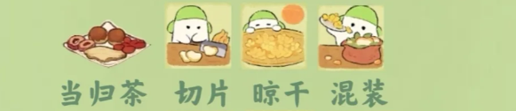 1、三清茶:茶坯、炒香、切片、晾干、混装