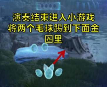 7、演奏结束会进入小游戏,把两个毛球踢到下面的金圈里面