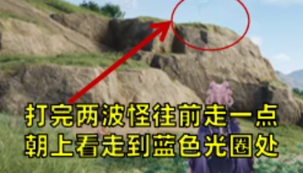 3、打完两波怪往前走一点,朝上看走到蓝色光圈处