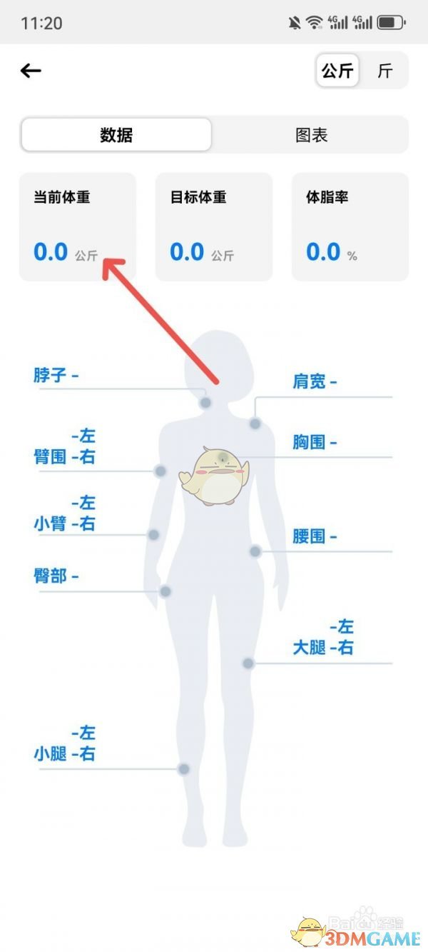 2、进入身体数据页面,点击体重