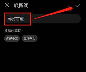 7、然后,输入自定义的唤醒词,点击右上角的对号后,三次录入对应语音即可。