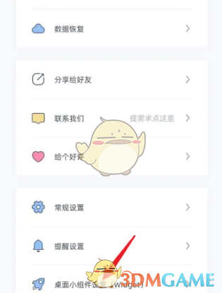 2、在我的页面,点击下方【桌面小组件设置】功能。