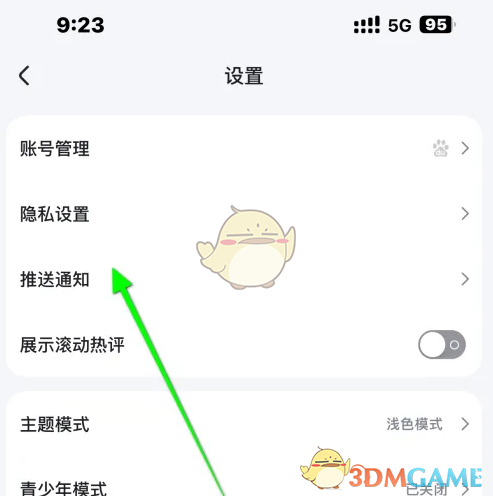 2、在设置页面,点击【推送通知】进入,如图所示。