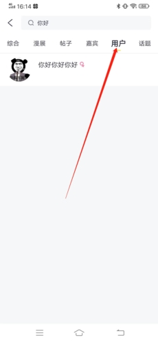 3、出搜索结果后,点击上方的“用户”,这样就能成功看到搜索的用户了。