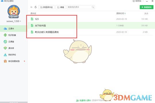 1、首先需要先进入到希沃白板软件内,你可以在课件列表中看到你之前制作的课件,选择并点击你想要导出的那份课件,如下图所示: