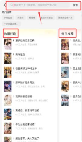 3、点击搜索栏,可输入内容搜索,也可查看 “热播好剧”“每日推荐”。