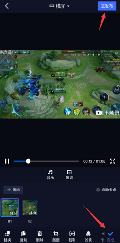 3、特效什么的自己做一下,点击完成,然后再点击右上角发布就可以啦!