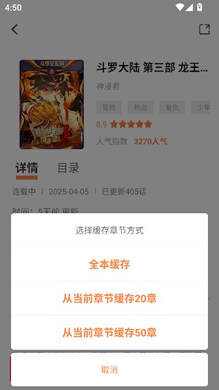 3、选择全本缓存后即可下载漫画