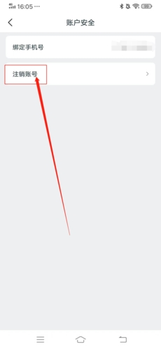 3、账户安全页面底部通常会显示"注销账号"选项,点击该功能按钮;