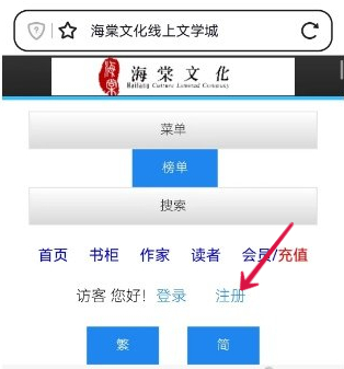 1.访问海棠文学城官网,点击首页右上角"注册"按钮