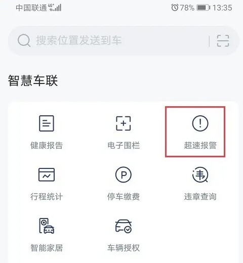 进入车辆管理界面后,滑动查找"超速报警"选项。该功能通常位于驾驶辅助或安全设置分类下,采用醒目的红色警示图标标注,方便用户快速识别。