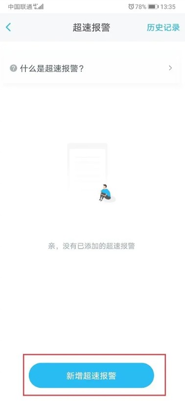 在超速报警主界面,点击右上角的"新增"按钮。系统会弹出包含多种预设速度阈值的菜单,同时也支持完全自定义设置,满足不同路况的个性化需求。