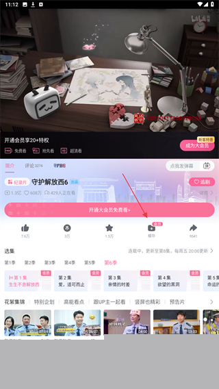 视频播放界面底部设有缓存功能按钮,一键点击即可开始下载保存。