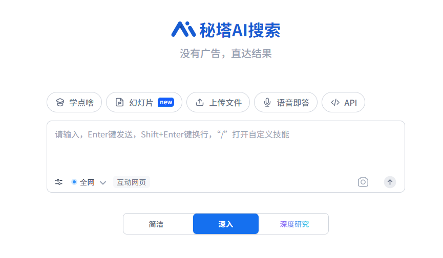 打开浏览器,直接输入官方地址:https://metaso.cn ,即可进入首页。