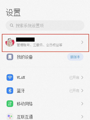 进入账号管理界面后,系统会显示包括云服务在内的所有账号相关功能。点击云服务即可进入管理页面,根据个人需求开启相应功能。