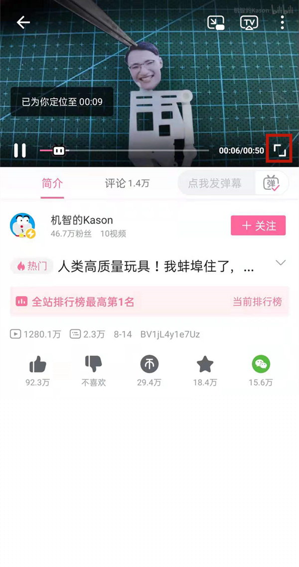 1. 启动哔哩哔哩客户端,选择任意视频开始播放