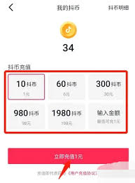 在抖币充值页面,你可以看到多种充值金额供你选择,比如 6 元可充值 60 抖币、30 元可充值 300 抖币等。你只需根据自己的需求,点击相应的充值金额选项。