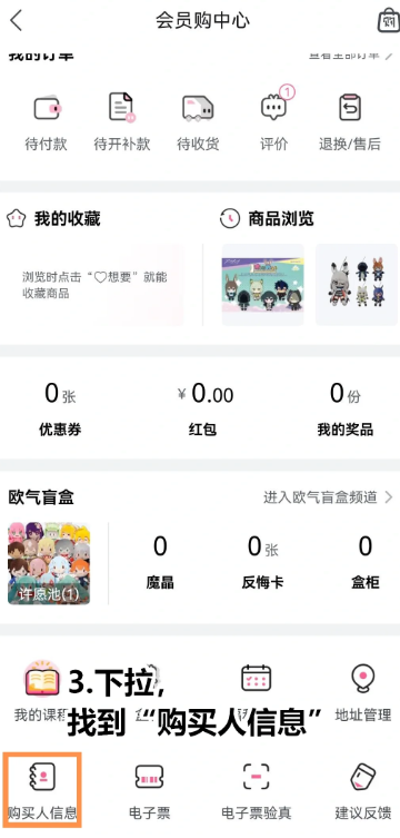 进入会员购后点击右上角人物图标,在【购买人信息】栏目提前添加观展人资料。