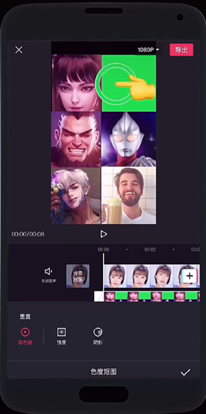 5、将视频拉到满屏,选择色度抠图,去掉拼图中的绿色,并且调整视频到合适的位置。