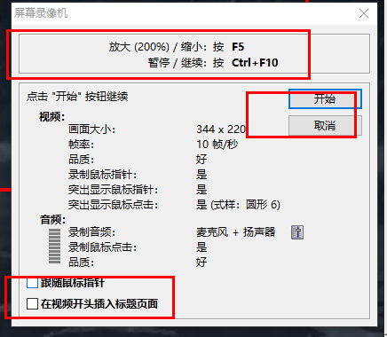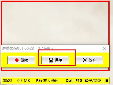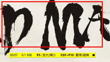 4、然后就可以看到开始录制了,如下图黄色字体有“放大/缩小”和“暂停/继续”的快捷键。