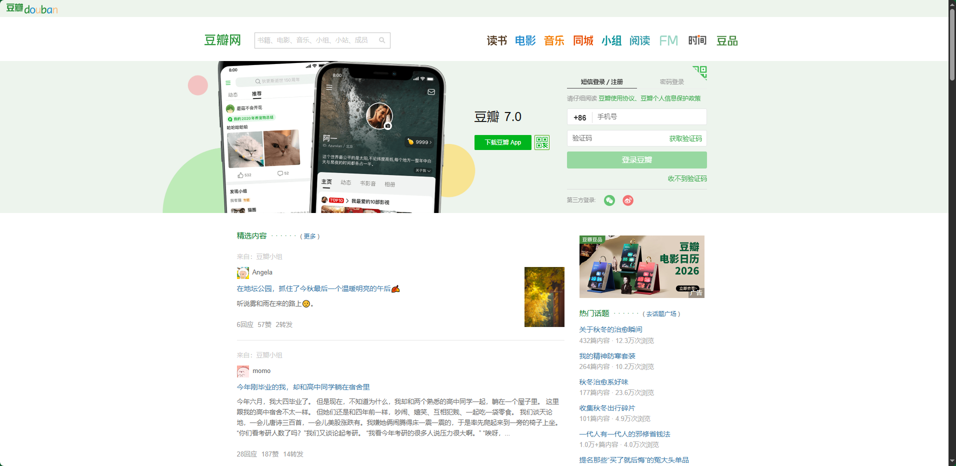 新版豆瓣网页版将内容发现与社交体验完美结合,用户只需在浏览器输入官网地址https://www.douban.com/,认准官方标识即可安全访问。平台采用多入口登录设计,手机验证、账号密码、微信扫码或微博授权都能快速完成认证。