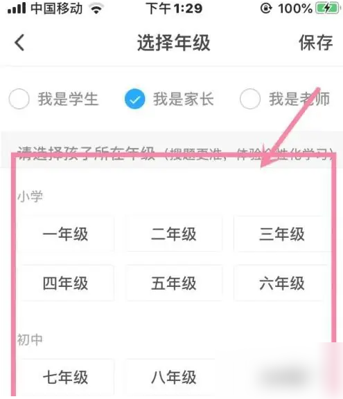 然后,点击“年级”选项