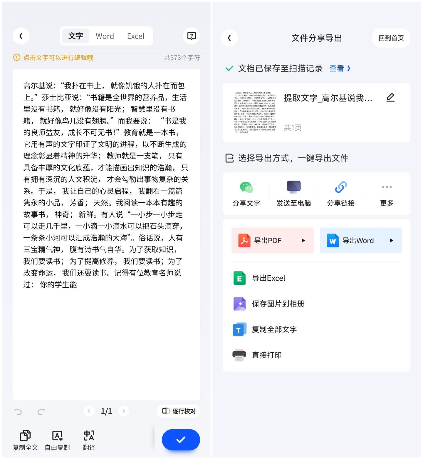 4. 你可以对提取的文字进行复制、转发、收藏等操作,方便后续使用。
