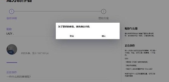 完成手机绑定和个人信息设置后,分享创作方案即可正式成为平台创作者。