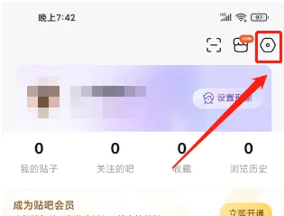 进入我的,点击【设置图标】。