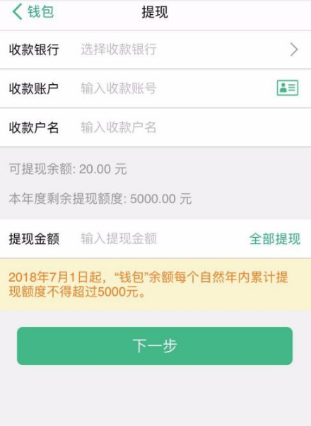 在提现的页面, 按照提示输入个人收款信息,再点击下一步
