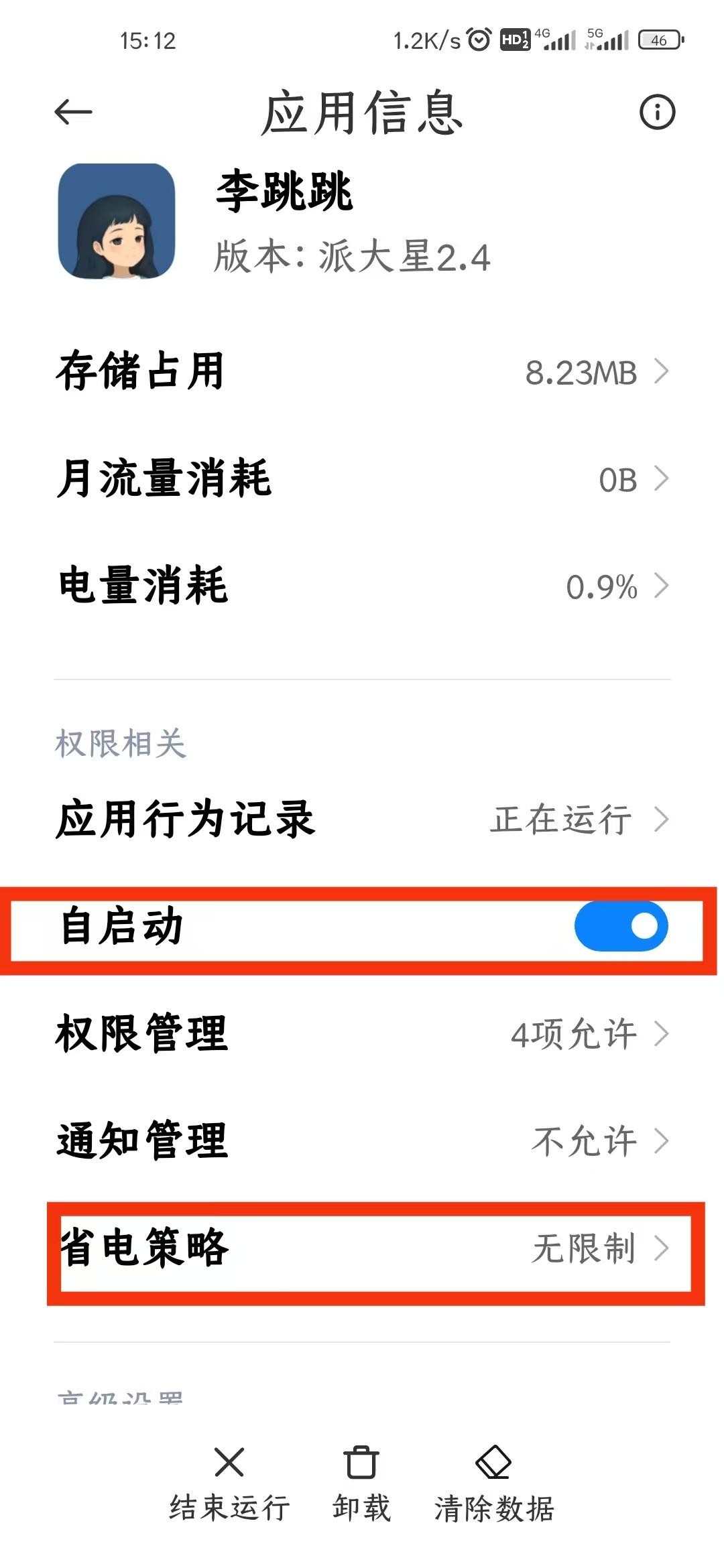 1. 开启自启动权限