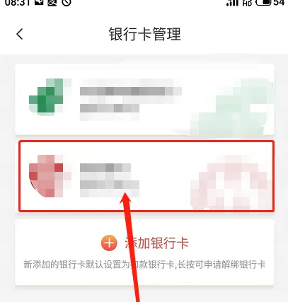 步骤五:然后我们会看到添加的银彳卡,长按三秒。