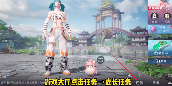 6、游戏内部还会存在着一个白嫖改名卡的渠道,在游戏大厅当中点击右下角的任务按钮进入任务界面。